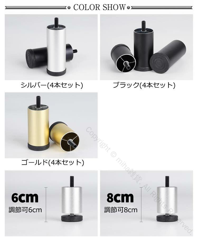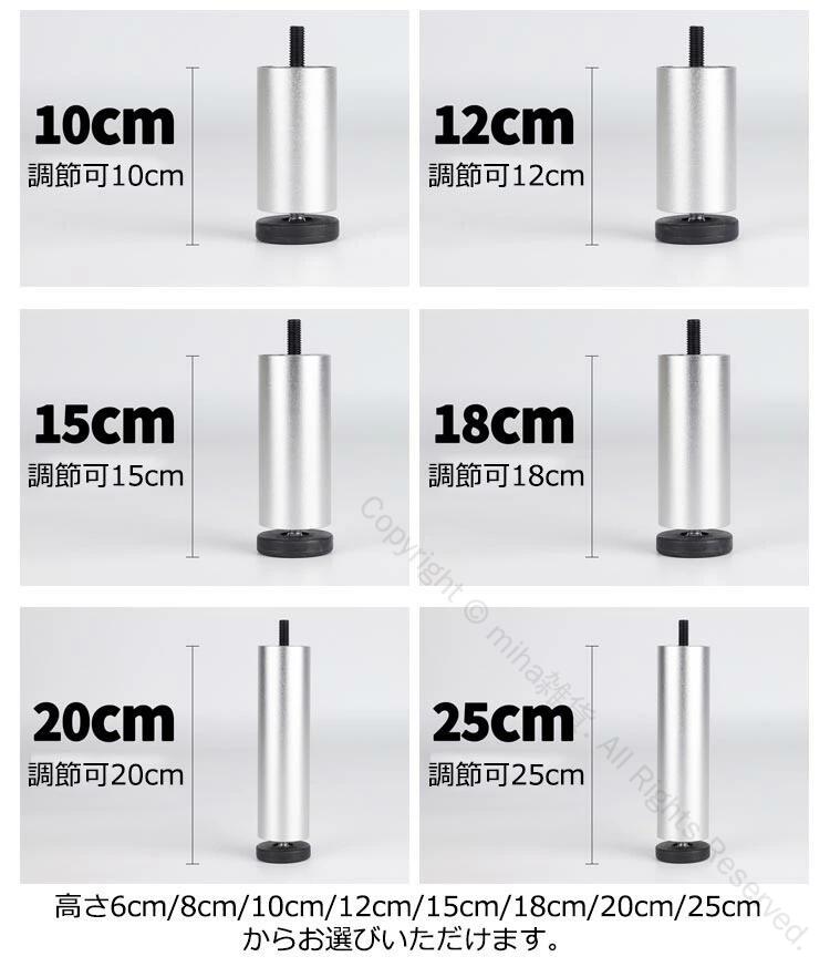 合金製家具脚 高さ調整可能 4本セット シルバー(4本セット) ブラック(4本セット) ゴールド(4本セット) 調節可6cm 調節可8cm 調節可10cm 調節可12cm 調節可15cm 調節可18cm 調節可20cm 調節可25cm
