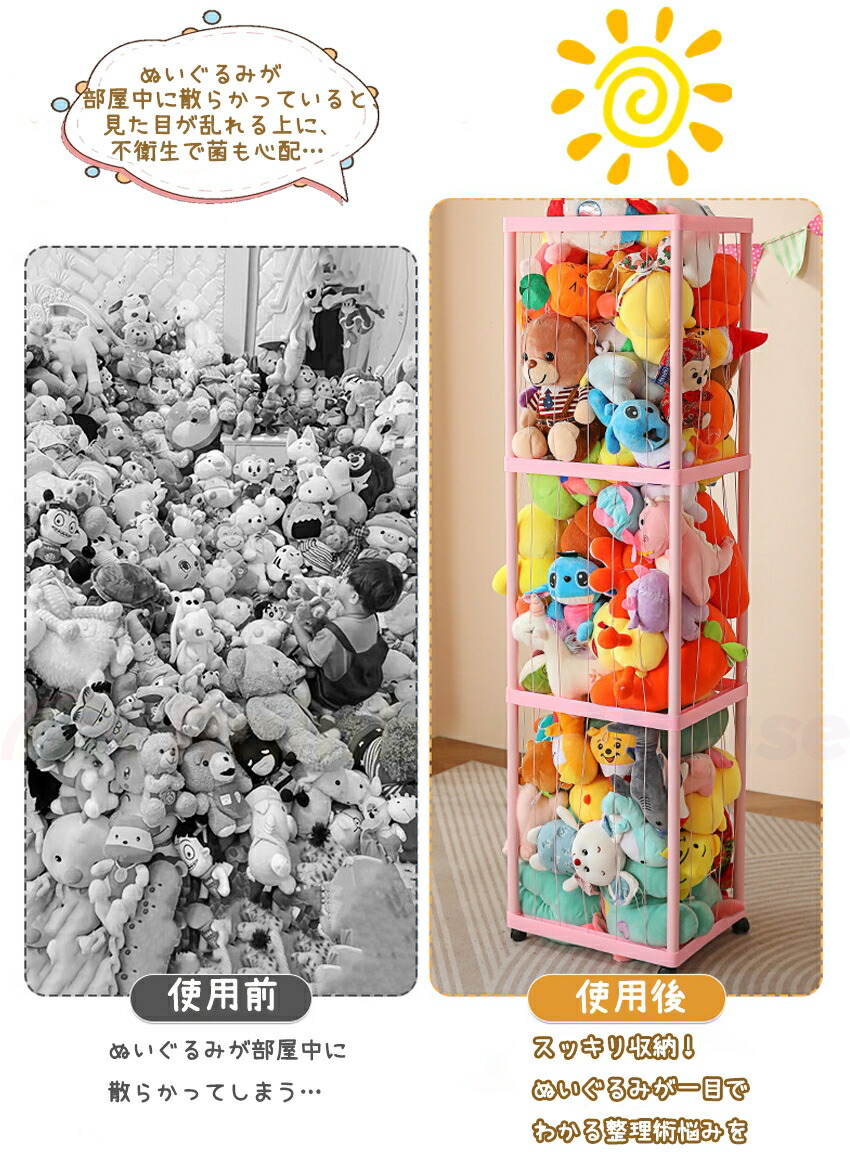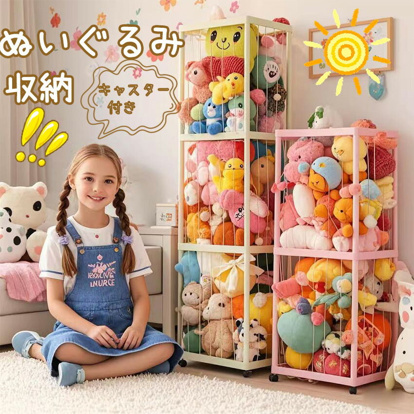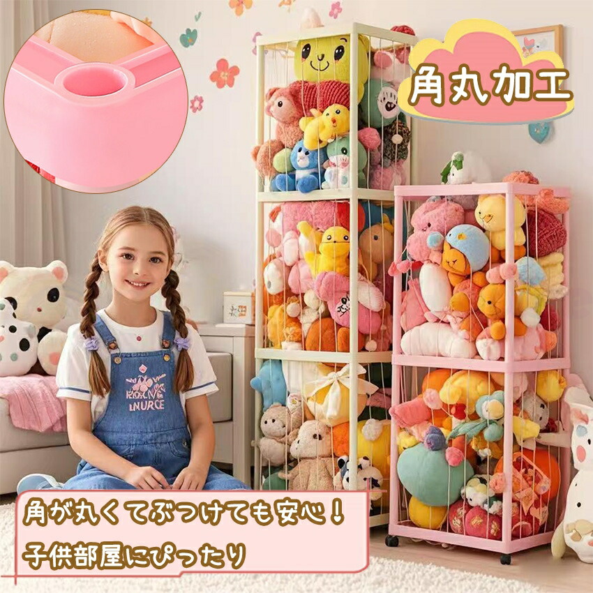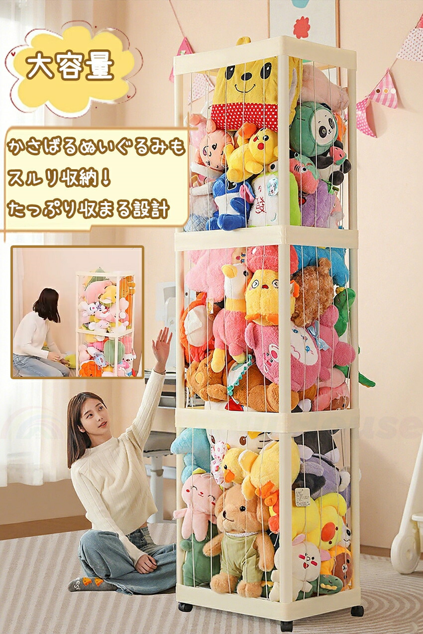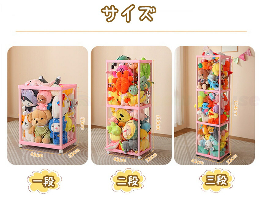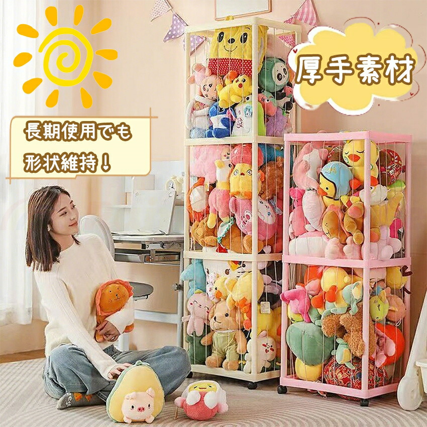 ぬいぐるみ 収納 大 容量 ぬいるぐみ ベージュ ピンク 一段(53cm) 二段(103cm) 三段(154cm)