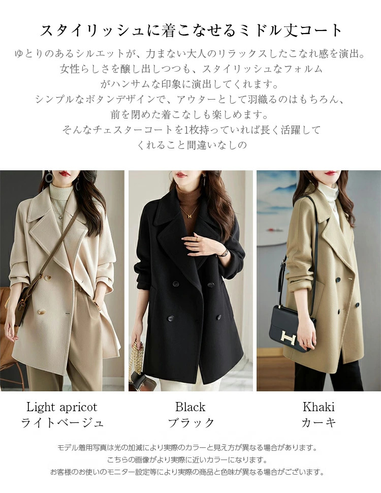 チェスターコート レディース 秋 冬 コート ジャケット 豊富な品揃え ライトベージュ ブラック カーキ M L 2L(XL) 3L(2XL)