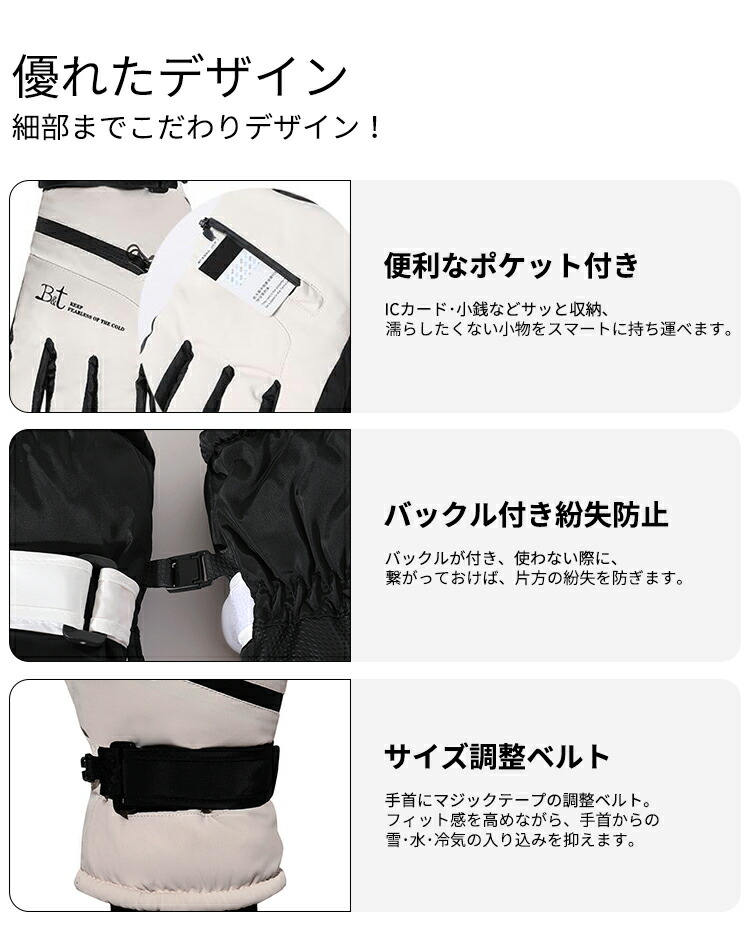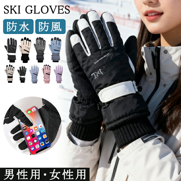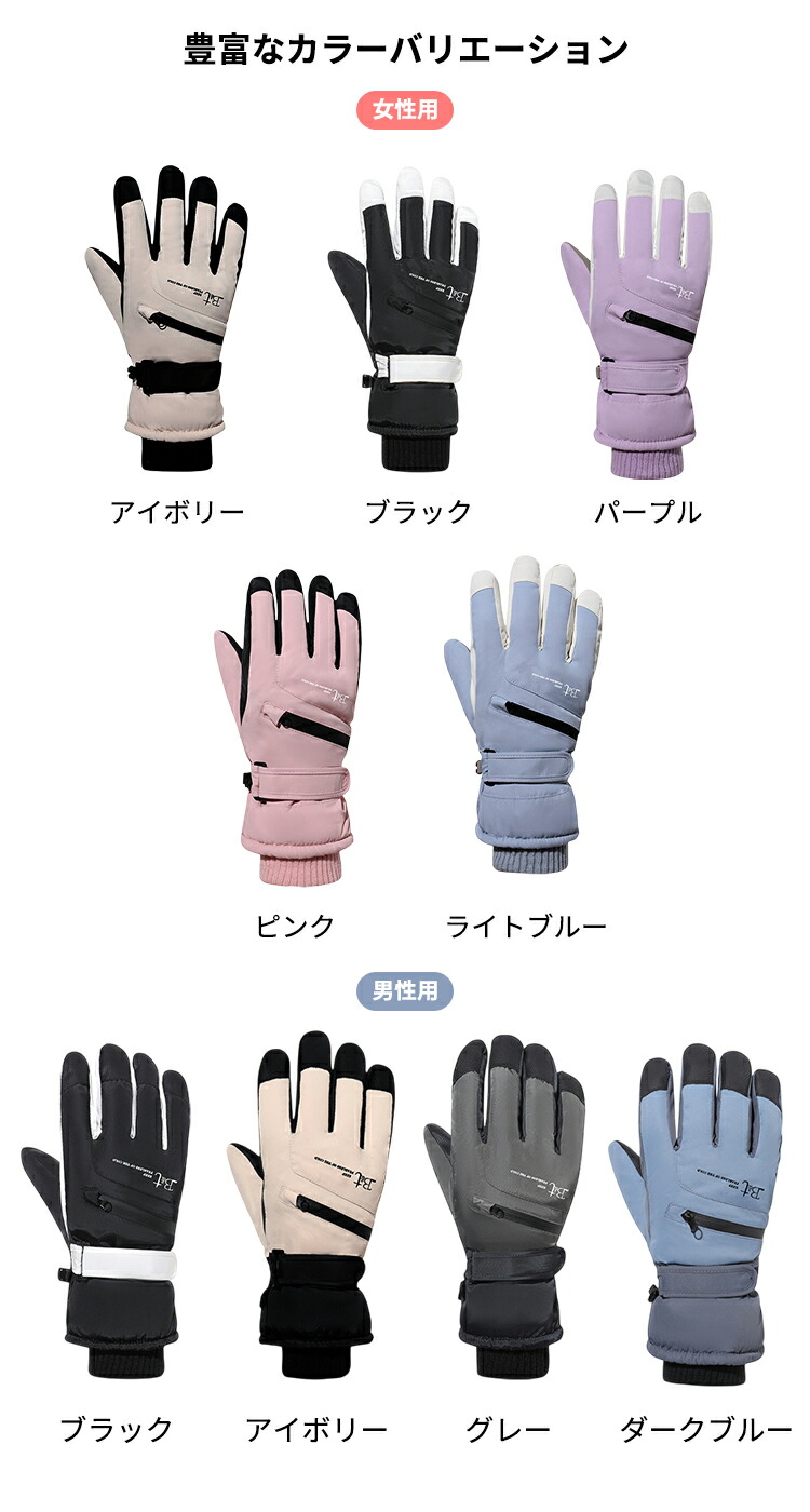 スキー グローブレディース メンズ 手 ウインタースポーツ スキー スノーボード用アクセサリー グローブ 人気 男性 女性 アイボリー ブラック パープル ピンク ライトブルー グレー ダークブルー