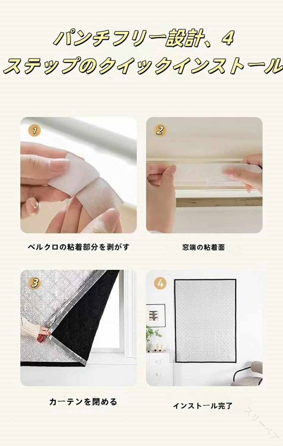 遮熱効果と完全遮光:夏は熱気を遮り、冬は冷気を防ぐことで快適な室温を維持し、エアコンの効率を向上させます。また、昼間でも暗室を作れる完全遮光機能が付いています。