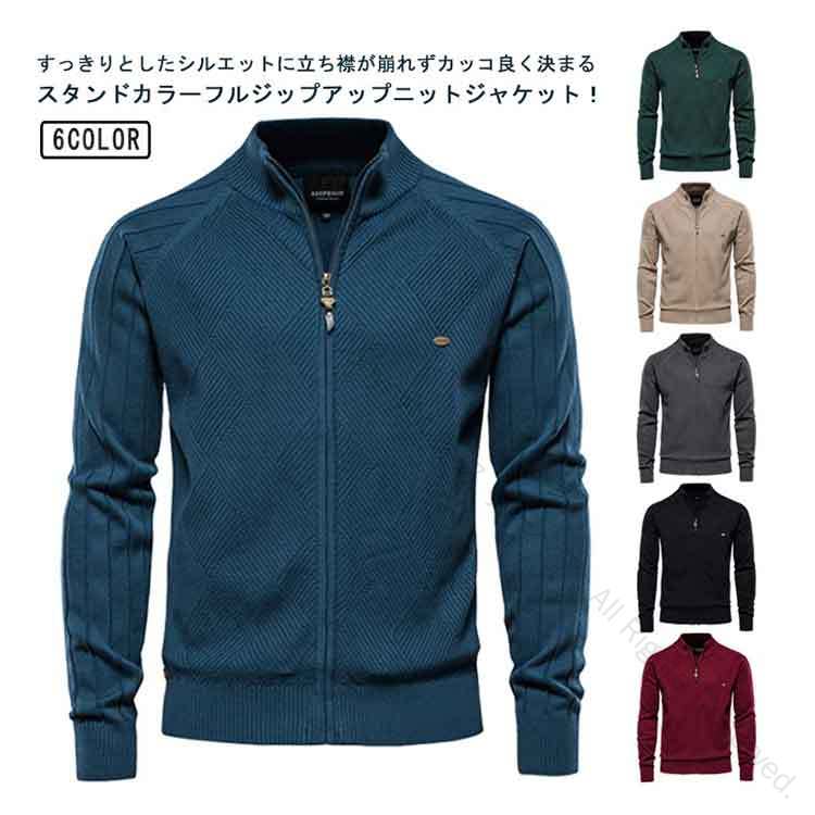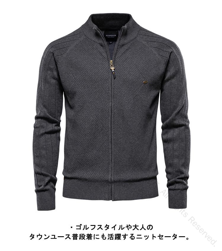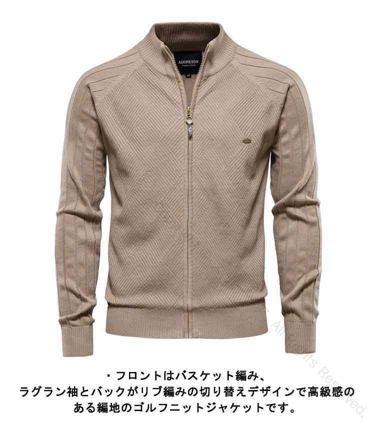 フルジップ コットン 綿 ニットジャケ ゴルフ ウェア メンズウェア セーター 新作 モカ ダークグリーン ネイビー ブラック グレー M L XL 2XL 3XL