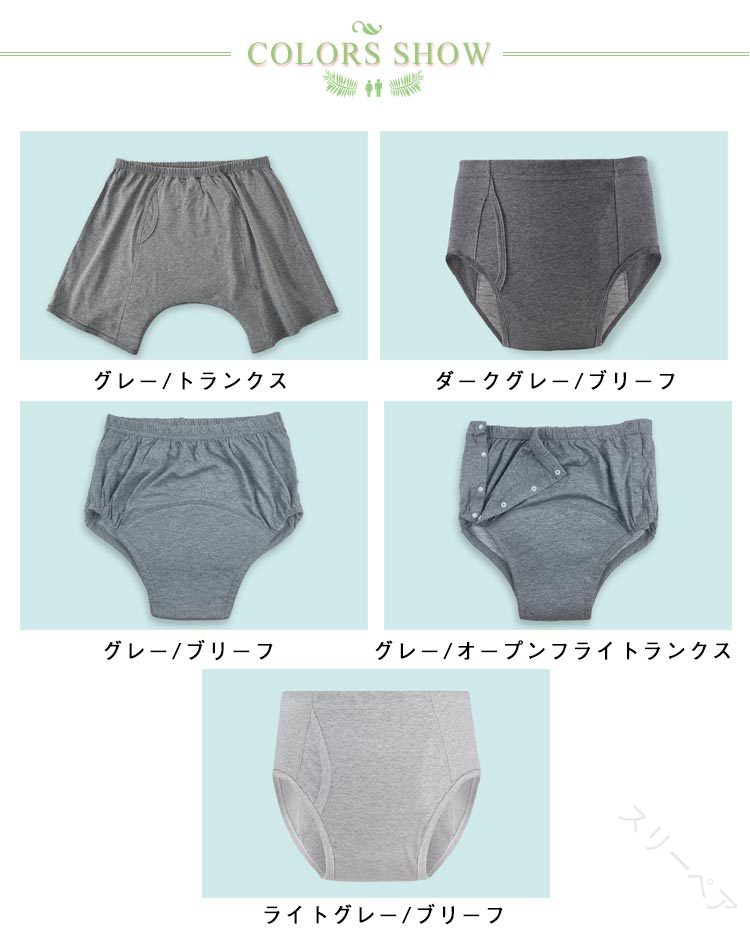 尿漏れパンツ 介護用 洗濯可能 280 グレー/トランクス ダークグレー/ブリーフ グレー/ブリーフ グレー/オープンフライトランクス ライトグレー/ブリーフ L XL 2XL 3XL