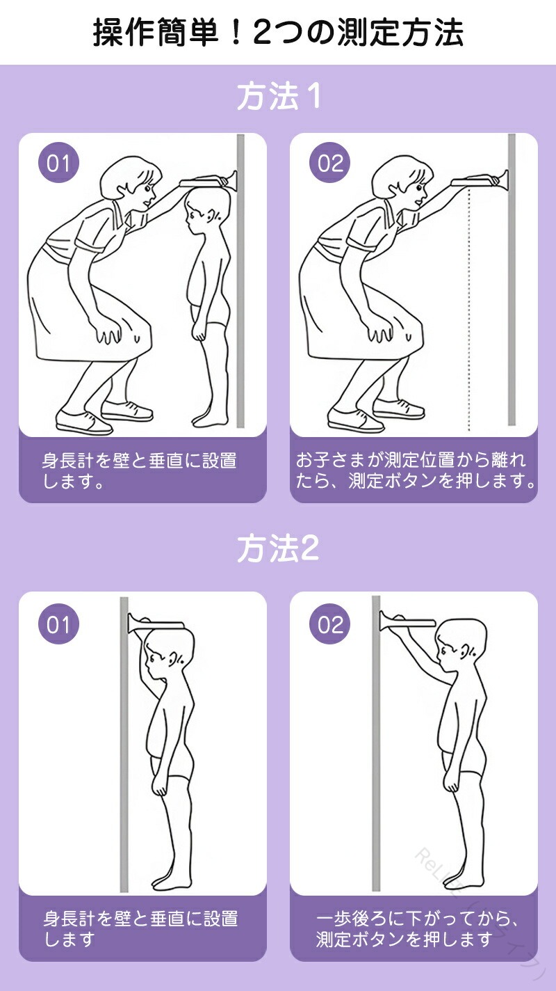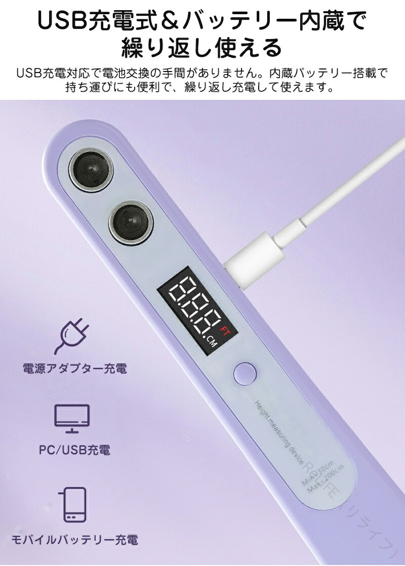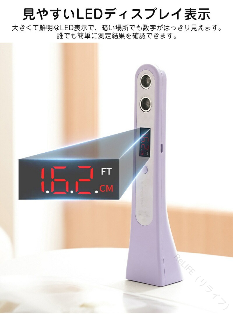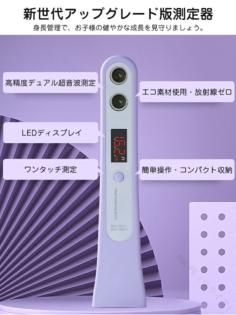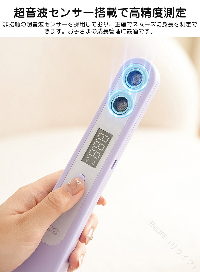 デジタル身長計 超音波センサー搭載 L ホワイト パープル グリーン ピンク