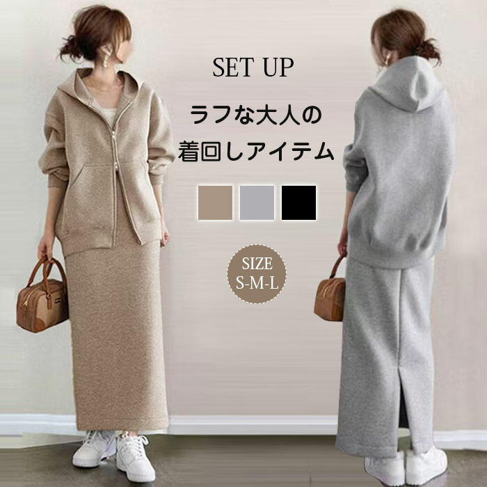 スカートセットアップ パーカーセットア スーツ セットアップ スカートスーツ 豊富な品揃え S M L ブラック グレー ベージュ