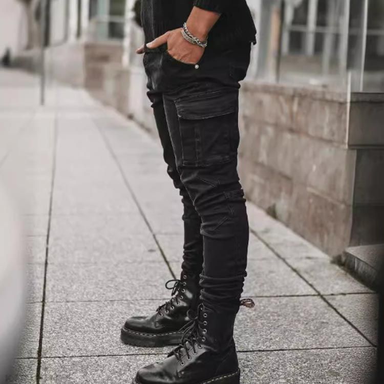 ストレッチ 作業ズボン スキニー ジー ズボン パンツ 新登場! ライトブルー ブラック S M L XL 2XL 3XL