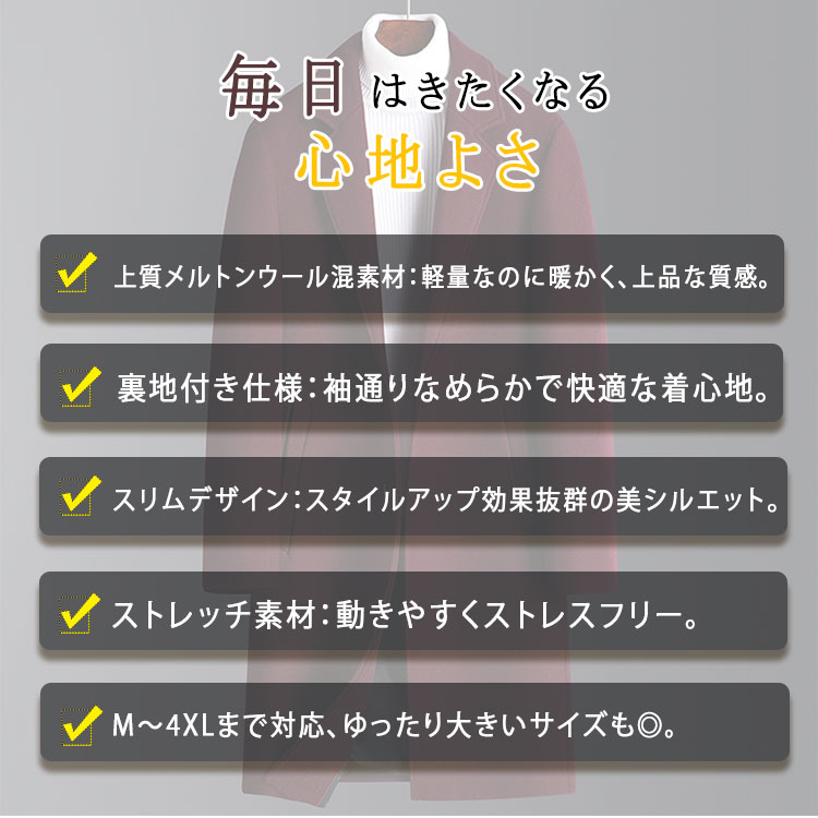 コート メンズ チェスターコート ロン コート ジャケット 新作 NO.1 NO.2 NO.3 NO.4 M L XL XXL 3XL 4XL