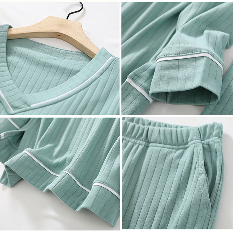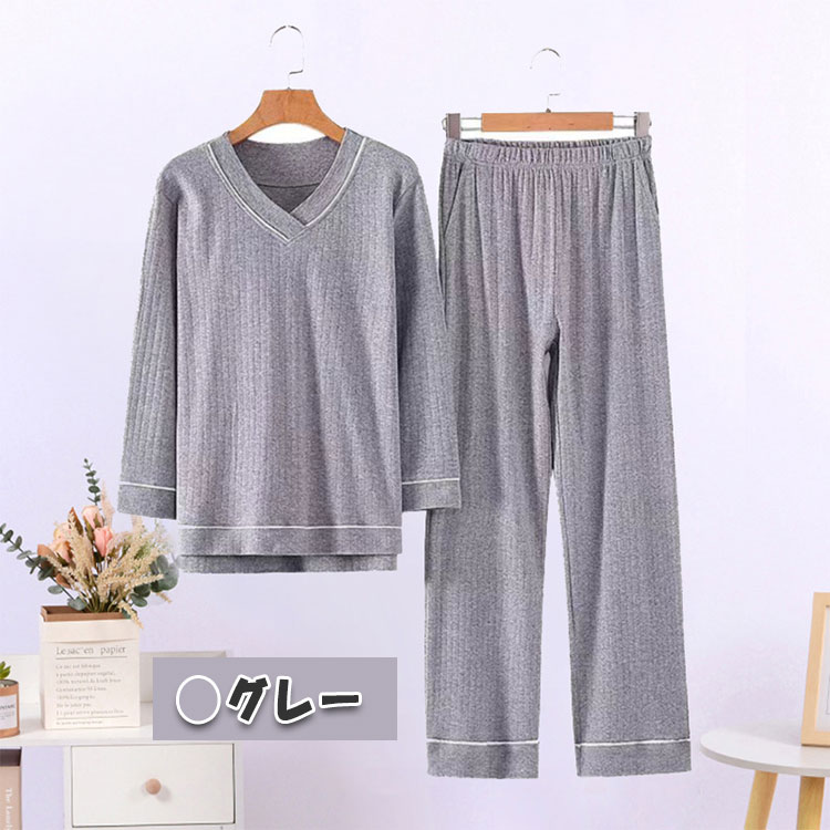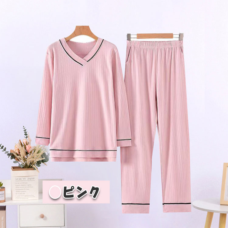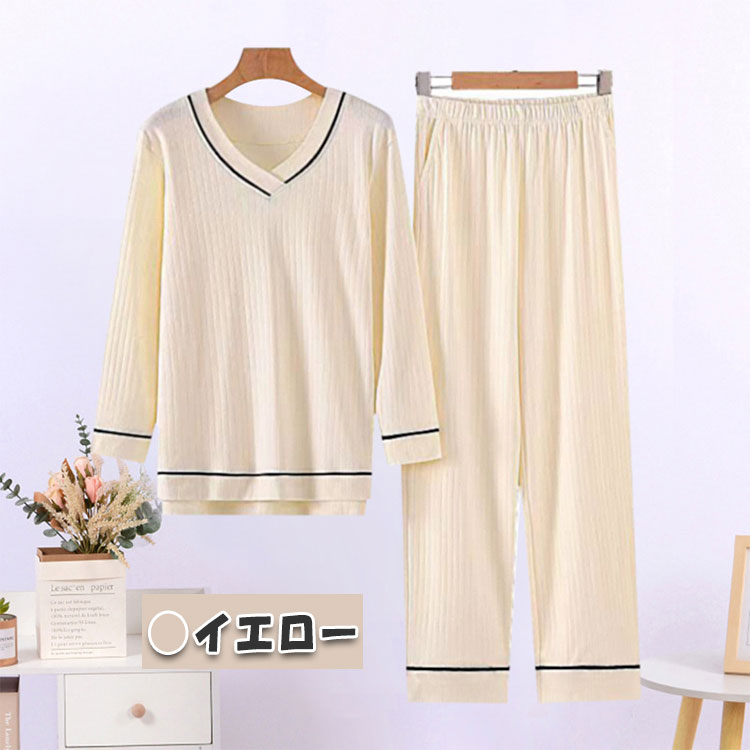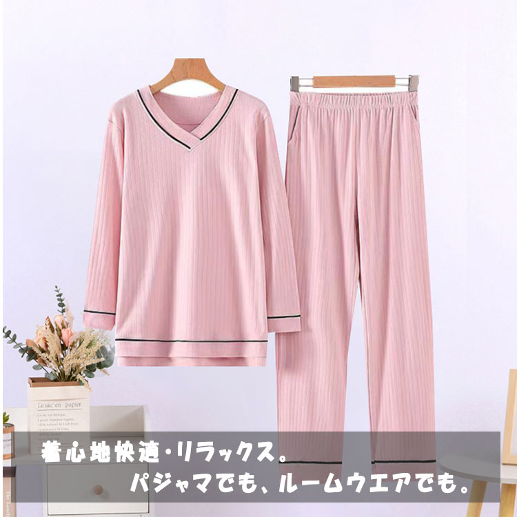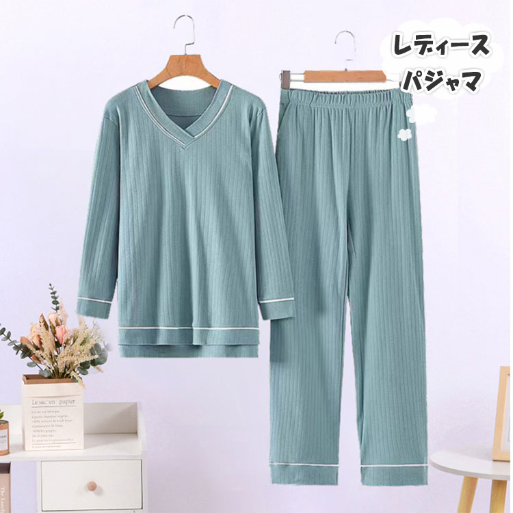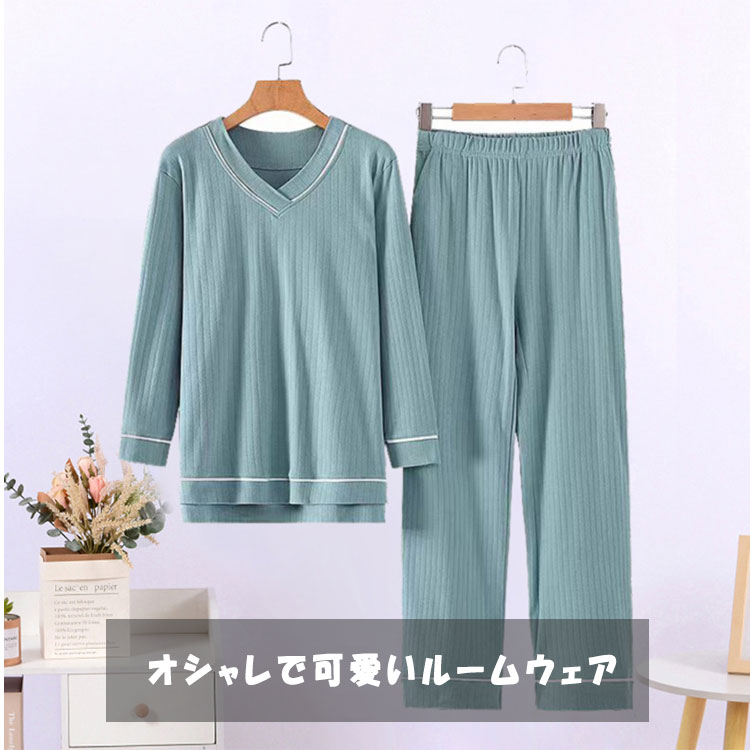 ルームウエア 上下セット レディース ワンマイルウエア パジャマ 長袖 九分丈ズボン 部屋着 寝巻き 綿 柔らか ゆったり 素肌感覚 通気性 ムレにくい 優しい着心地 秋 ナイトウエア Vネック 春