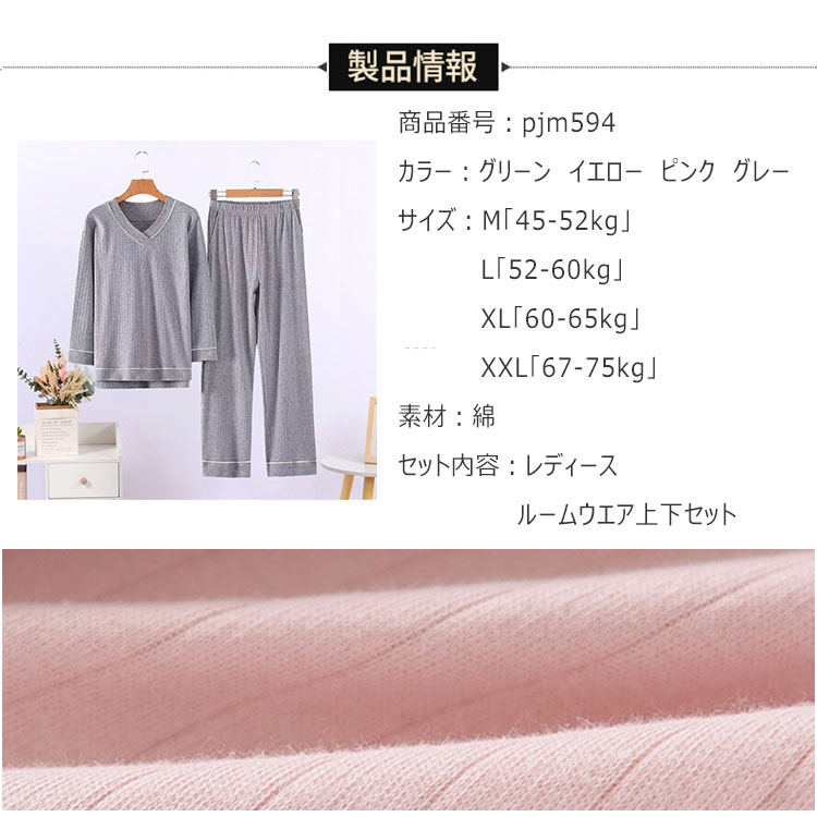 ルームウエア 上下セット レディース レディース ナイトウェア ルームウェア ルームウェア 上下セット 通販 グリーン イエロー ピンク グレー M「45-52kg」 L「52-60kg」 XL「60-65kg」 XXL「67-75kg」