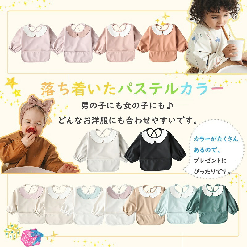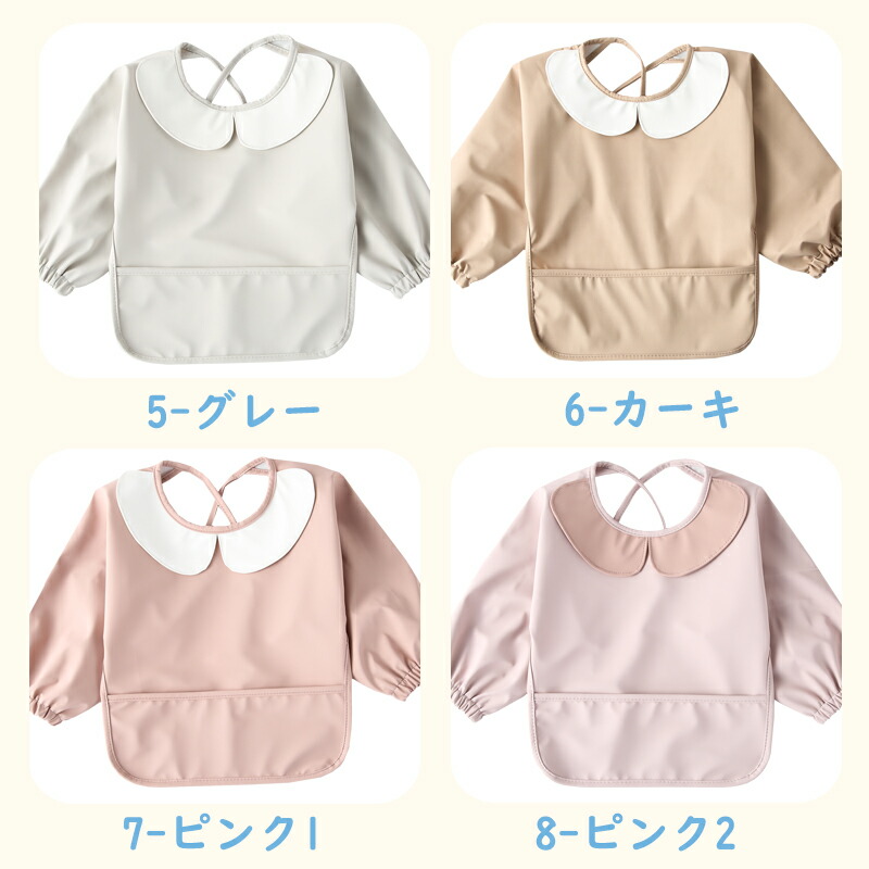 お食事エプロン 長袖 ベビー 離乳食 S(6-12ヶ月) M(12-36ヶ月) L(36-54ヶ月) 1-ホワイト1 2-ホワイト2 3-ベージュ1 4-ベージュ2 5-グレー 6-カーキ 7-ピンク1 8-ピンク2 9-サーモン 10-ブラウン 11-グリーン1 12-グリーン2 13-ブラック