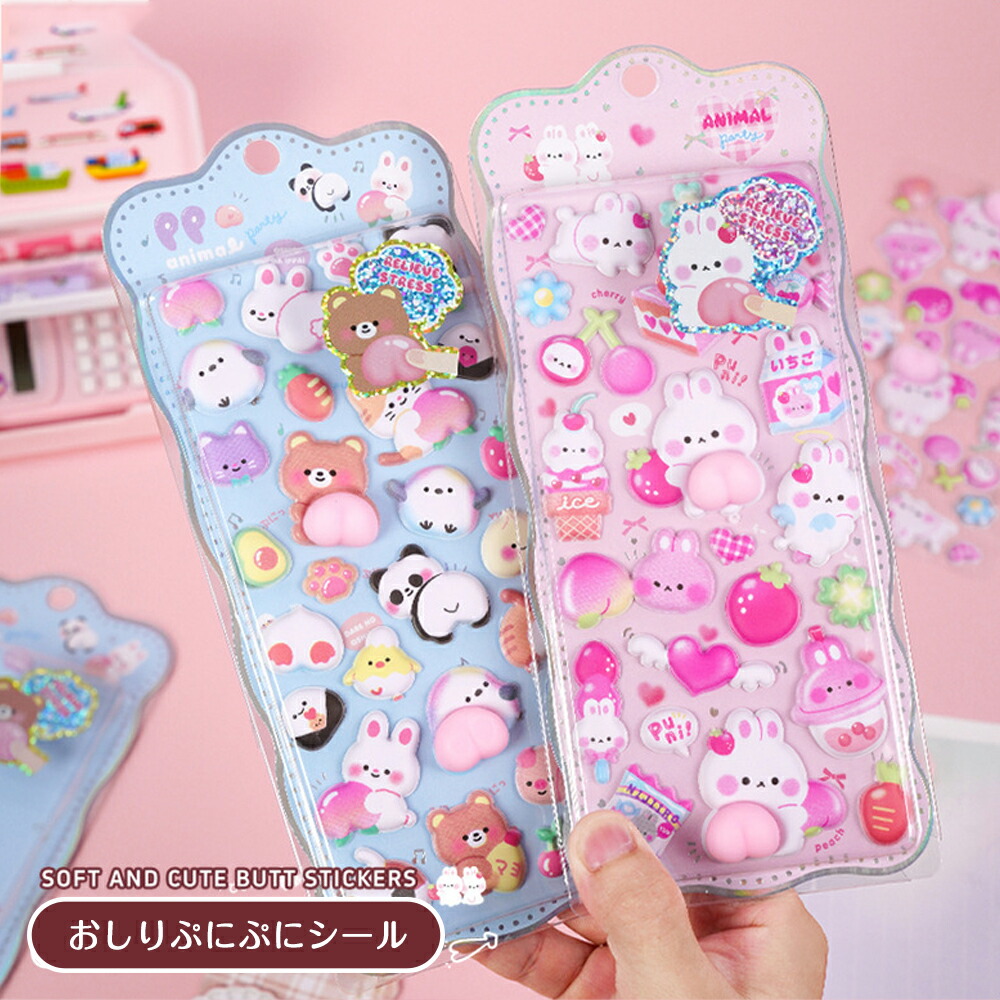 ぷにぷに おしり シール スクイーズ 文房具 事務用品 ラベル ステッカー シール ステッカー 続々入荷中 タイプA*2枚 タイプB*2枚 タイプA+タイプB