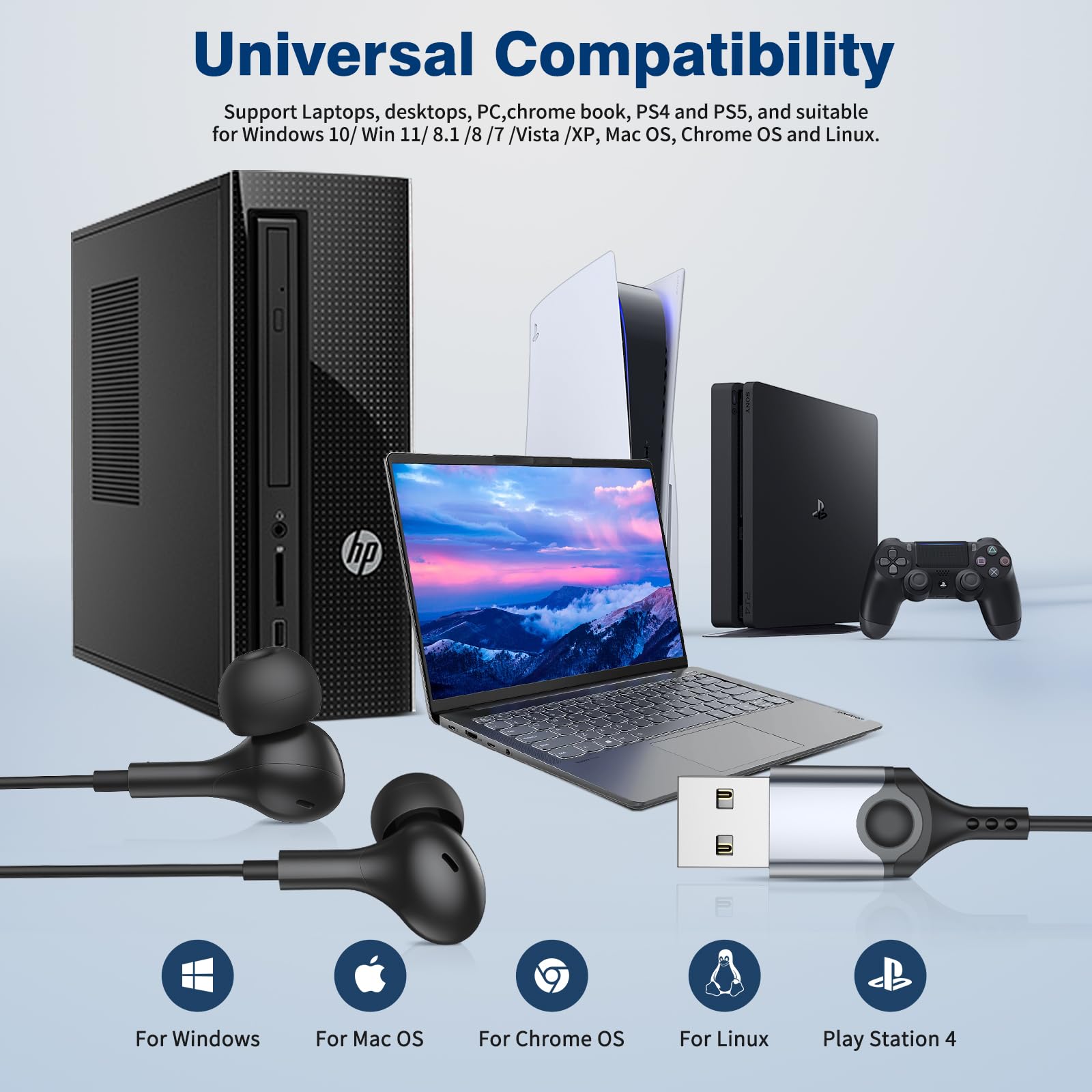 PC用ヘッドセット USB-A イヤホ ホワイト ブラック