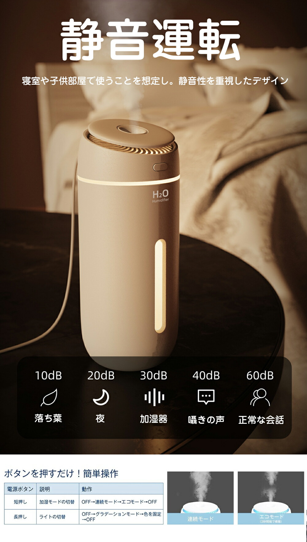 加湿器 卓上 小型 超音波加湿器 車用 ホワイト ピンク