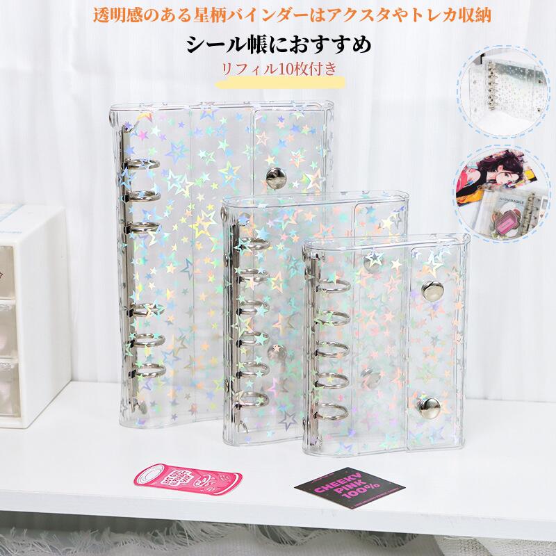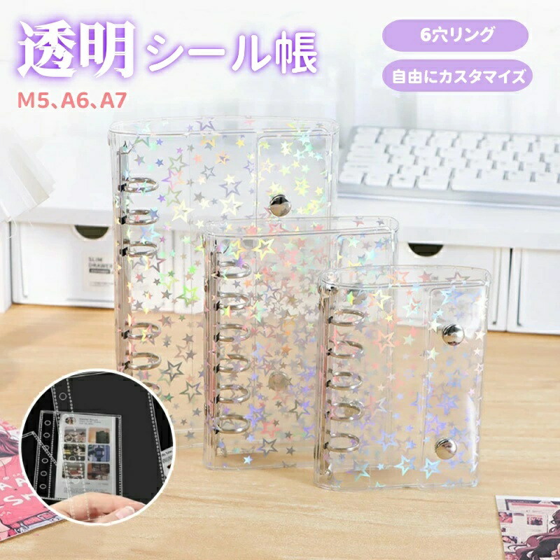 透明シール帳 キラキラ輝く シール帳カ 文房具 事務用品 手帳 ノート システム手帳 新作 M5 A6 A7 リファイル10枚のみ 星柄(シール帳カバー) 全透明(シール帳カバー) 星柄(リファイル10枚付き) 全透明(リファイル10枚付き) 星柄+リファイル20枚+立体シール 全透明+リファイル20枚+立体シール 星柄+リファイル30枚+立体シール 全透明+リファイル30枚+立体シール