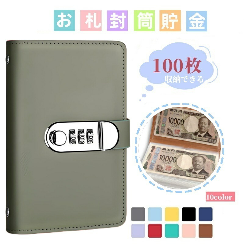 お札封筒貯金 貯金ファイル ダイヤルロック付き 100枚収納可能 お札 貯金箱 バインダー おしゃれ 封筒貯金 現金詰めバインダー 札 お金仕分け 貯金封筒 折らない