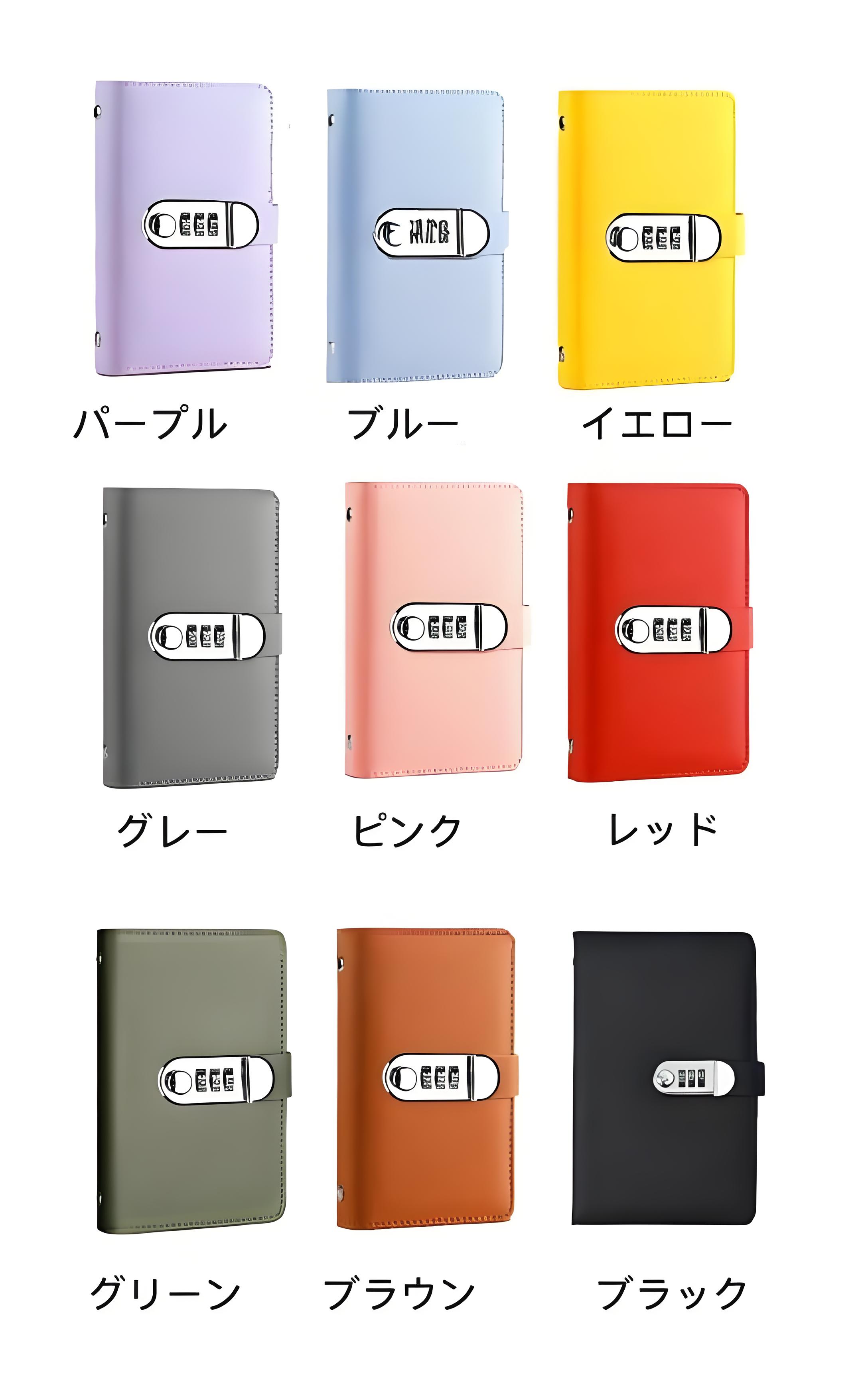 お札封筒貯金 貯金ファイル ダイヤルロ ピンク ブルー パープル イエロー グレー ブラック レッド ブラウン グリーン