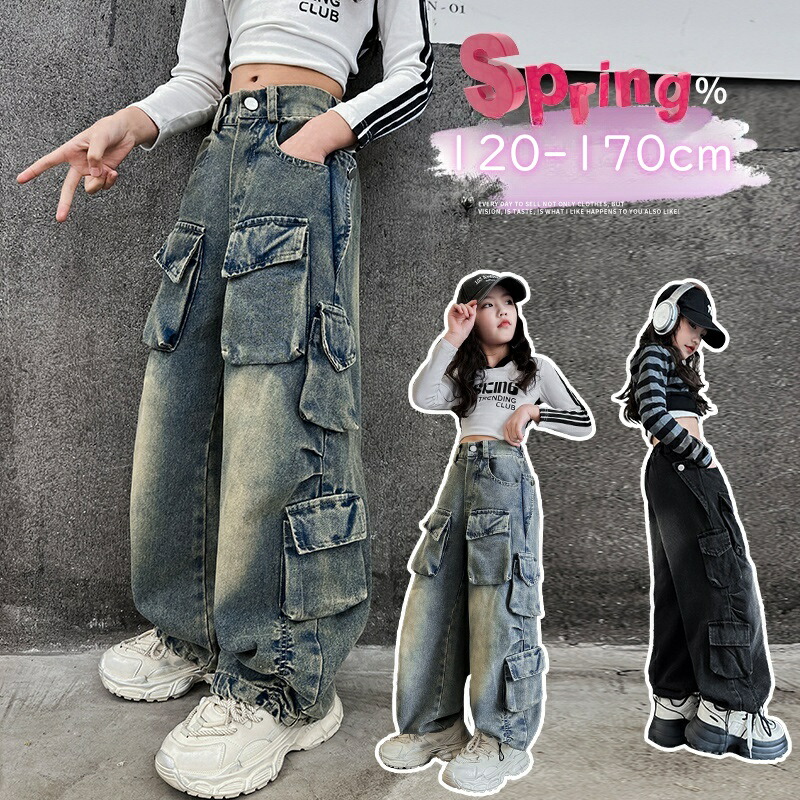 キッズ ジーパン 女の子 ダンス服 子 キッズ ボトムス パンツ 早い者勝ち ブラック ブルー 120cm 130cm 140cm 150cm 160cm 170cm