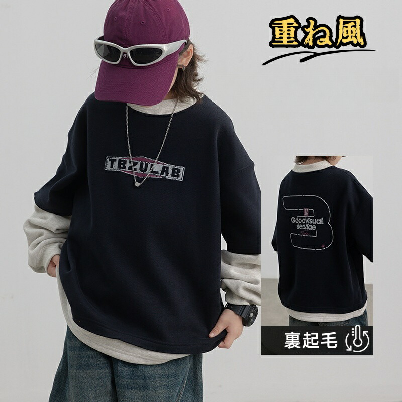 パーカー 男の子 裏起毛 キッズ 160 重ね風 ジュニア 大きいサイズ 春 秋 冬 通園 通学 小学生 中学生 高校生 韓国子供服 可愛い 130cm 140cm 15 120cm
