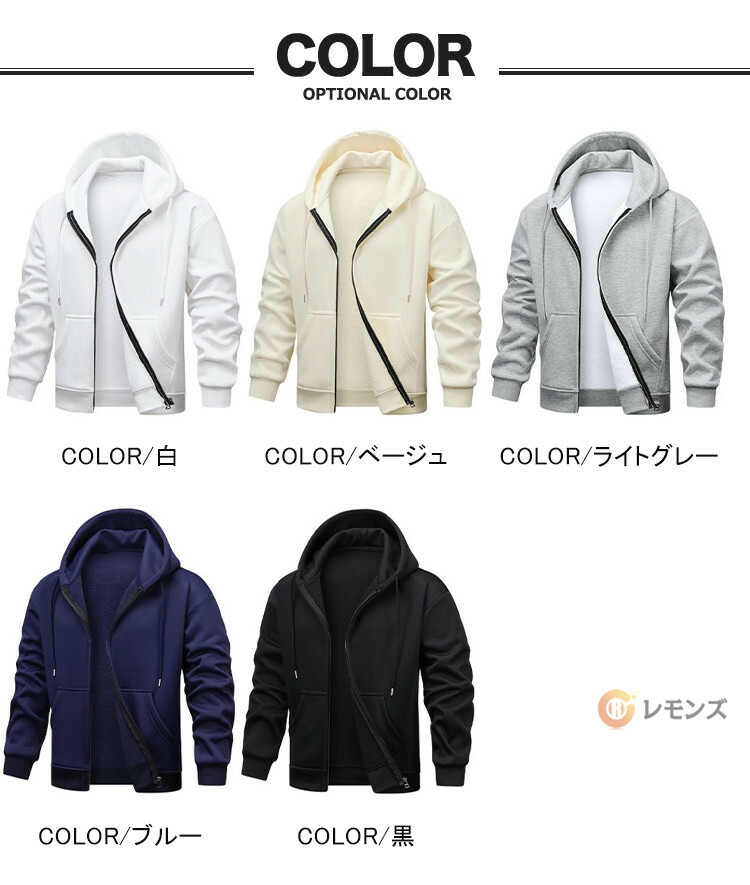 ジップパーカー メンズ 無地パーカー トップス パーカー 新登場! M L XL 2XL 3XL 4XL 白 ベージュ ライトグレー ブルー 黒