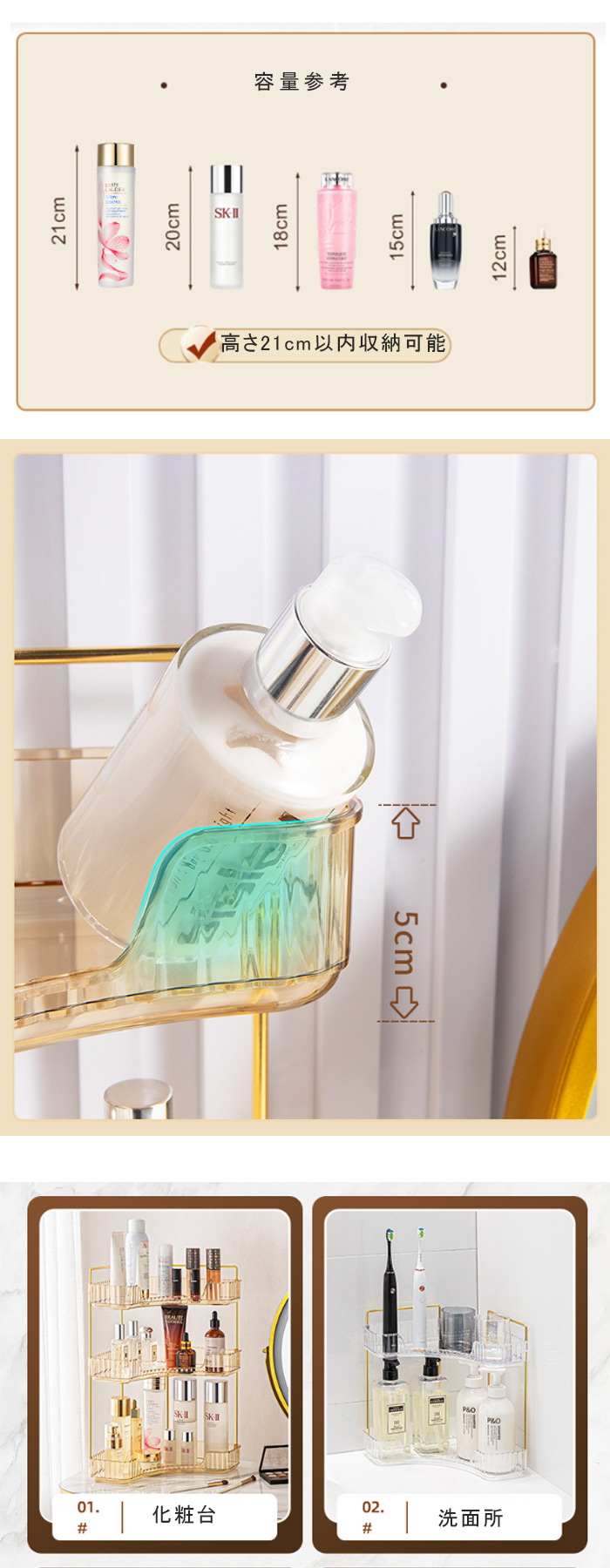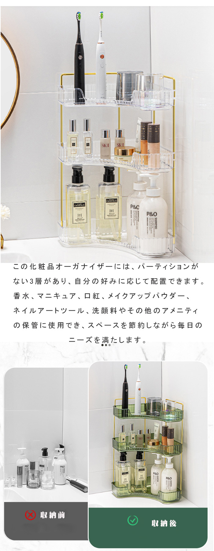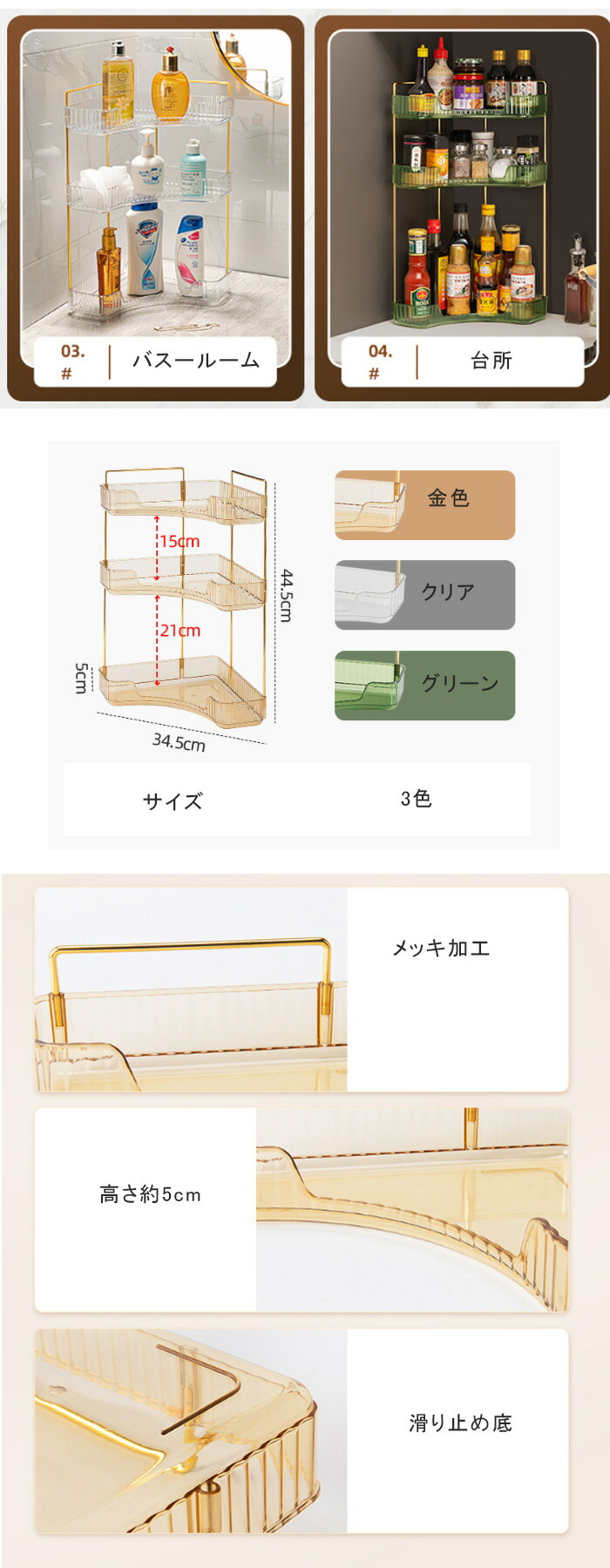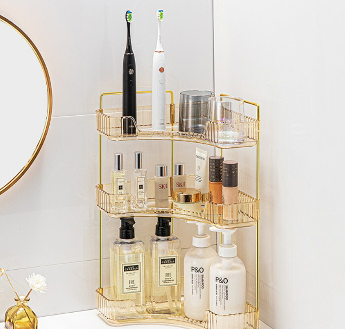 コスメ収納 トイレ 棚 浴室 化粧品 金色 クリア グリーン