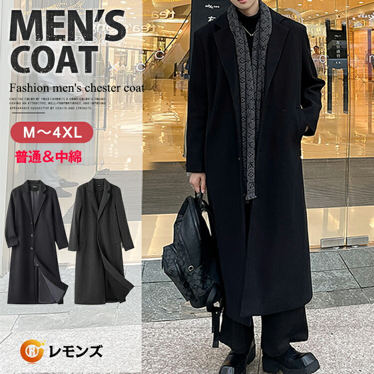 超ロングコート メンズ チェスターコート ビジネスコート メルトン コート 裏中綿キルティング ロング丈 紳士服 通勤 中綿入り アウター スリム 防寒着 春服 秋服 冬物 男性用 オフィス 冬 冬服