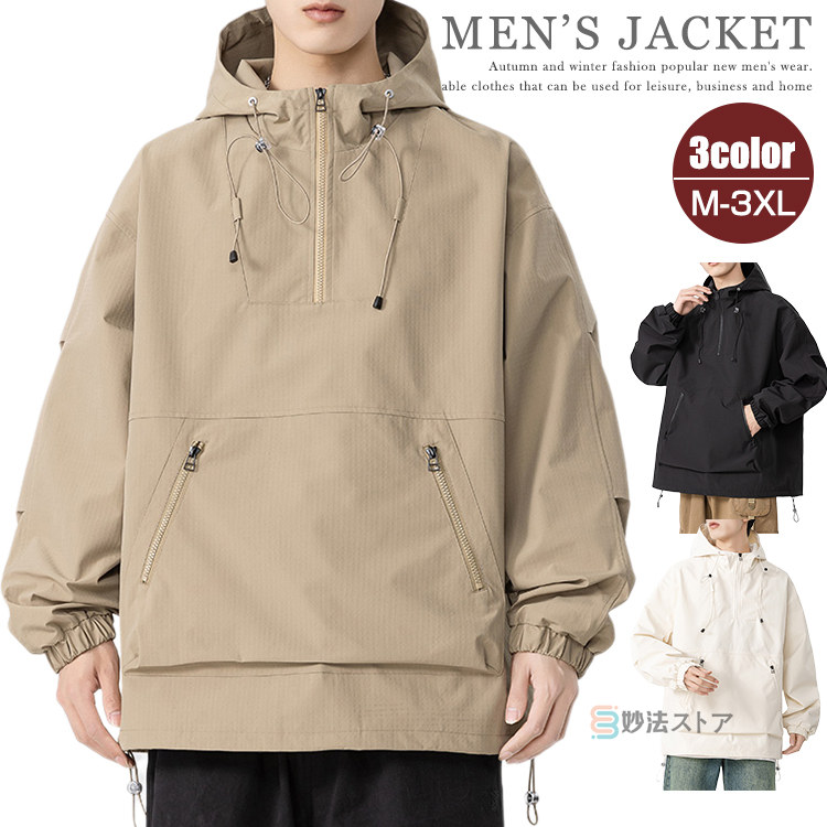アノラックパーカー メンズ マウンテンパーカー プルオーバー ジャケット ハーフジップ アウター ビッグシルエット 撥水 防風 ハイネック アノラックジャケット ウインドブレーカー カ ビッグパーカー