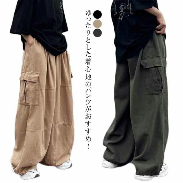 ゆったり 無地 大きいサイズ カーゴパンツ ロングパンツ 大きいポケット メンズ 春 カジュアル 秋 長ズボン 超ワイド ビッグシルエット かっこいい オーバーサイズ ワークパ トレンド