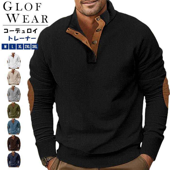 コーデュロイ トレーナー メンズ ゴルフウェア 30代 40代 50代 父 長袖 トップス 秋 冬 プルオーバー 配色 大きいサイズ 大人 カジュアル シンプル ファッショ おしゃれ