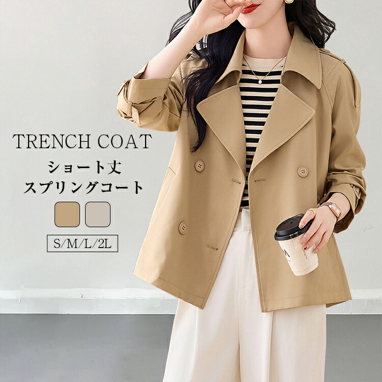 トレンチコート レディース 春 コート ショートコート スプリングコート 裹地付き 羽織り ショート丈 トレンチレンチコート アウター 大きいサイズ おしゃれ きれいめ通勤 ゆったり