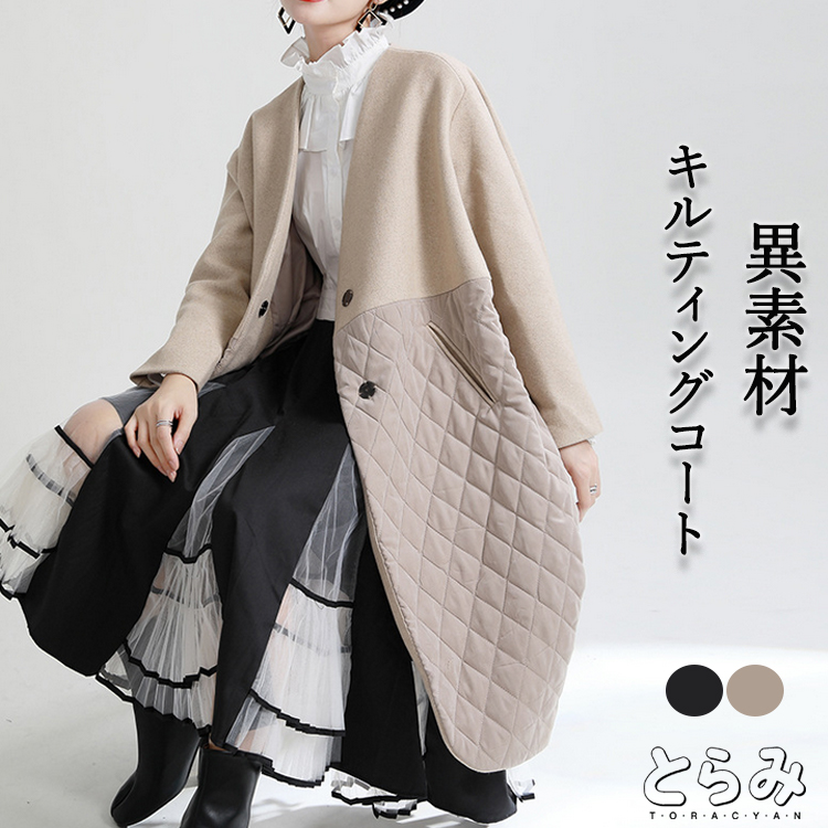 異素材が存在感を放つキルティングコート