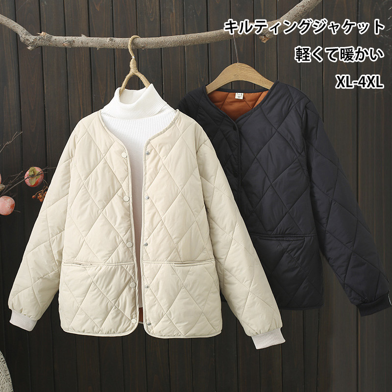 キルティング ジャケット レディース 秋冬 ノーカラー キルティングジャケット 中綿 アウター コート ふんわり スッキリ 長袖 大きいサイズ 大人 ゆったり 着回し 防寒 あっ シンプル