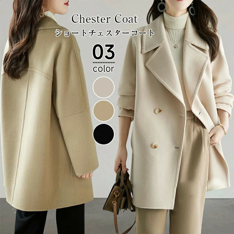 チェスターコート ショート レディース 秋 冬 ショートコート ウールコート チェスター コート ポケット付き アウター 羽織 ミドル丈コート 防寒 暖かい 厚手 軽く 上品 通勤 コー 大きいサイズ