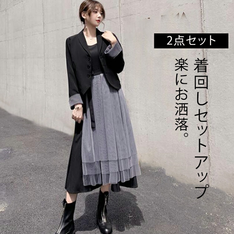 長袖 セットアップ スーツ+チュールスカート 2点セット レディース 春 秋 冬 ロング丈 着痩せ 綺麗 大きいサイズ 通勤 入園式 卒業式S M L 2L 3L 5L プレゼント 4L
