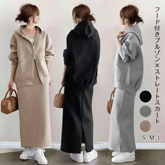 スカートセットアップ パーカーセットアップ 長袖 2点セット ロングスカート セットアップ レディース スカートスーツ 春秋 ロング丈 ハイウエスト ママスーツ おしゃれ ファッション カジュアル風