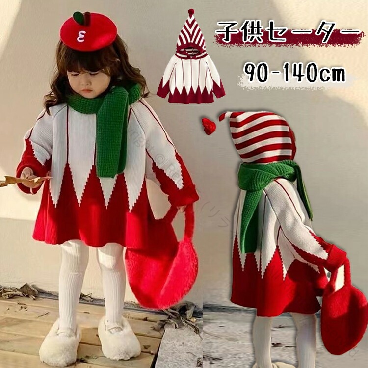 子供服 クリスマス ニット セーター キッズ ベビーニット サンタクロース クリスマスセーター ベビー服 男の子 女の子 長袖 防寒 ケープ カジュアル プレゼント ギフト 可愛い 暖かい
