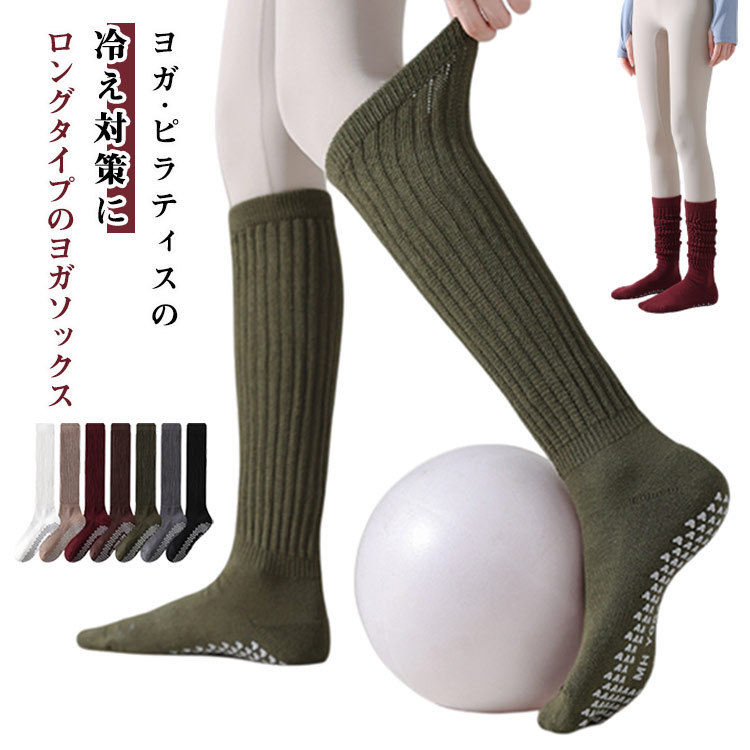 ピラティス 靴下 冬 ヨガソックス ヨガ靴下 レディース 滑り止め ハイソックス ロング ルーズソックス かわいい 厚手 綿 暖か 通気性 寒さ対策 抗菌消臭 ヨガ トレーニング 汗対策