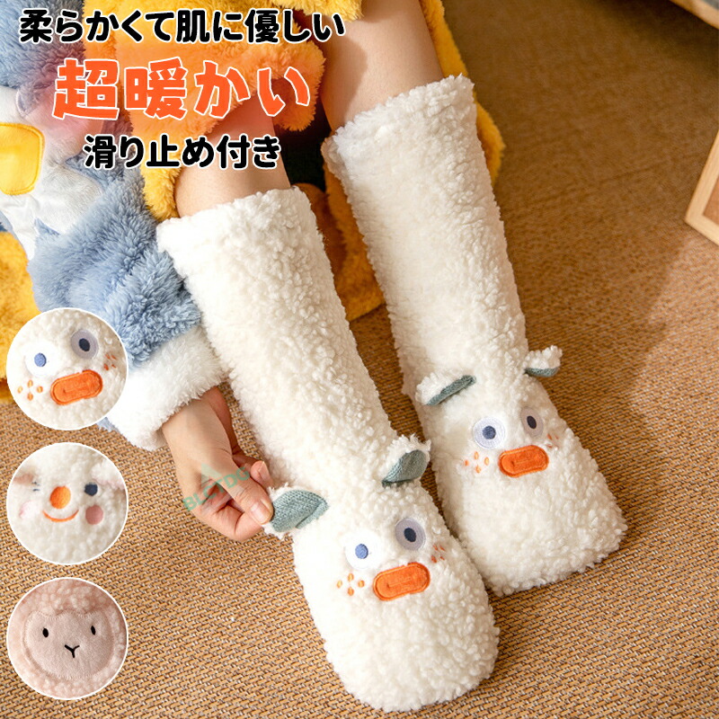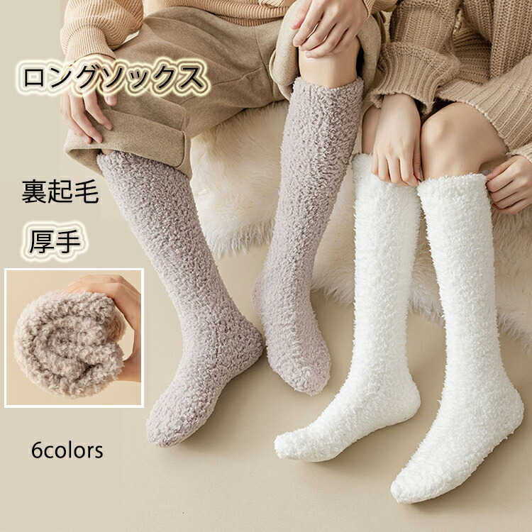 靴下 ロングソックス ハイソックス レディース 秋 冬 モコモコ靴下 床ソックス 暖かい靴下 冷え性対策 もこもこ ふわふわ 寒さ対策 厚手 無地 防寒