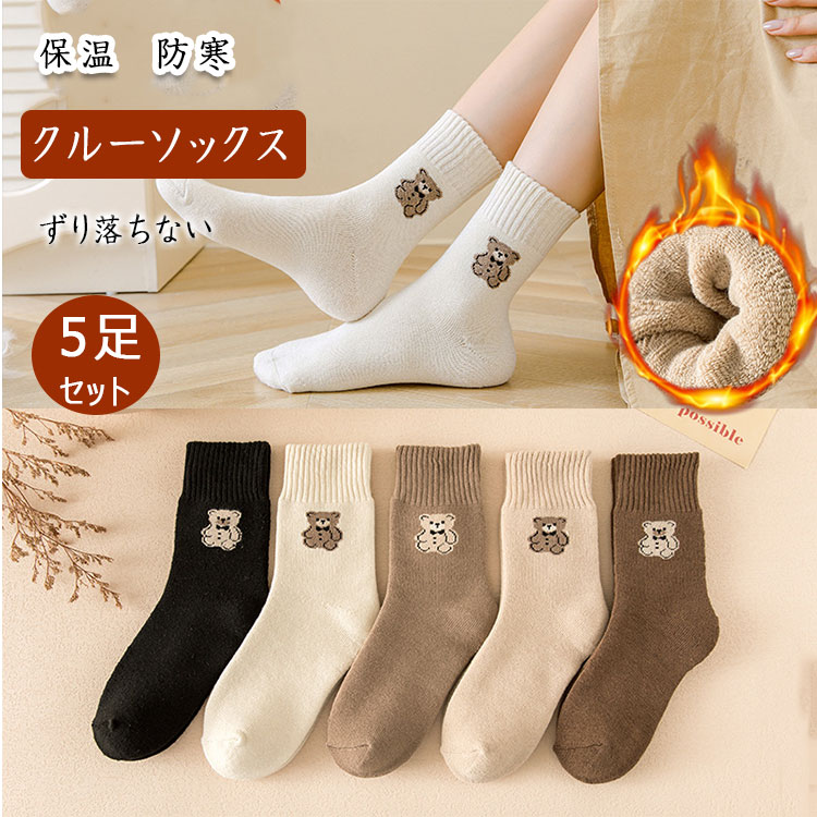 靴下 5足セット 暖かソックス レディース ガールズ クルーソックス まとめ買い 秋冬 裏起毛 暖か 保温 防寒 冷え対策 柔軟 弾力 通気性 吸湿 ムレにくい 優しい肌ざわり 快適な穿き心地 吸汗