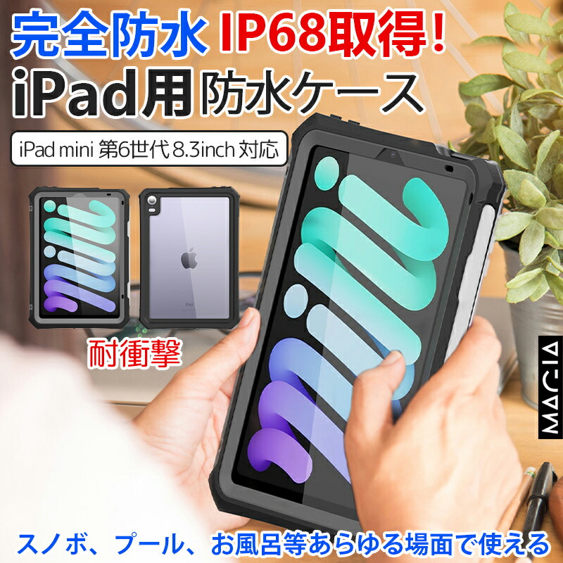 Apple iPad mini A17 Pro 2024 防水ケース 完全防水 全面保護 360防水 防雪 防塵 耐衝撃 指紋認識 6 落下防止 A2567 A2568 防水カバー