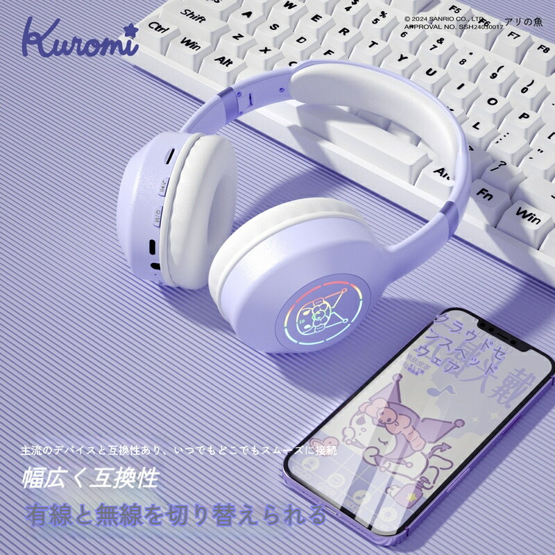 Bluetoothヘッドフォン 有線非対応 Bluetooth5.3 ワイヤレスヘッドホン サンリオ 高音質 ノイズキャンセリング 軽量 LED付き ヘッドセット かわいい 無線 切り替え 電話 有線