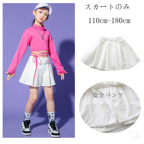 キッズ ダンス衣装 スカート 女の子 白スカート 110 120 130 140 150 160 170 180 hiphop K-pop 演出服 舞台 応援団 練習着 ガールズ 団体服