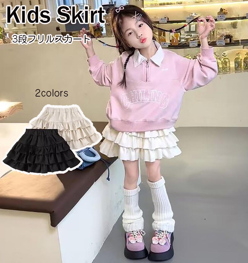 3段フリル フリルスカート風ショートパンツ 女の子 ガールズ ショートパンツ小学生 中学生 制服スカート 子供 こども 子供服 キッズ服 無地 ミニスカート ダンス衣装 発表会 可愛 イベント